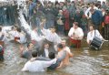 Считается, что того, кто первым вынет из воды брошенный священником крест, весь год ждут успех и здоровье. Еще поверье гласит, что если крест замерзнет в воде, то урожай уродится на славу.