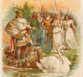 Рихарда Вагнера «Лоэнгрин» положена народная легенда о прекрасном рыцаре, приплывающем к людям неведомо откуда, в ладье, запряженной лебедем, чтобы избавить от смертельной опасности всеми покинутую и преследуемую девушку. Герой спасает ее от врагов и берет в жены. Много лет живут они счастливо, но неожиданно возвращается лебедь, и незнакомец исчезает так же таинственно, как и появился.